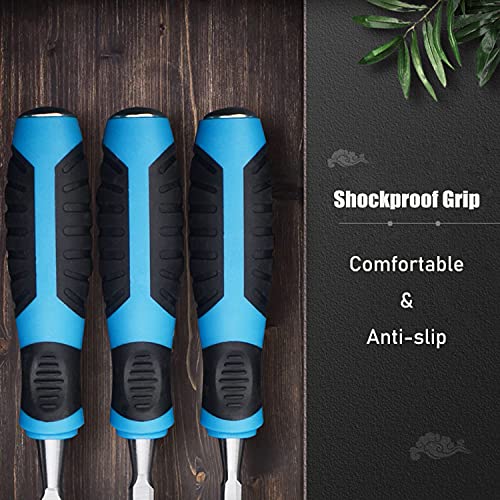 - 【CONTROL & BALANCE】 Chisels are well-balanced with contoured handles to provide increased leverage for precision, and co-molded grips are shock-absorbing for comfort with extended use. The butt end is shaped for comfortable striking with the palm of your hand or mallet with accurate results – great for intricate DIY and craftwork projects.