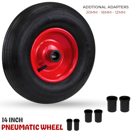 • 14"/35 cm Wheelbarrow Wheel Tyre 4.00-6 PU Heavy Duty Wheel Replacement Tire for Garden Trolley Barrow Go Cart Trailer Truck Black/Red