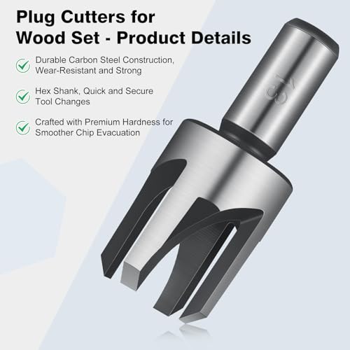 - 【 3-in-1 Professional Performance】 Our wood plug cutter set is precise and easy to use, creating perfect countersink holes, removing round plugs, and extracting old nails and screws from furniture and floors. A 3-in-1 tool for drilling, countersinking, and enlarging holes for maximum efficiency.