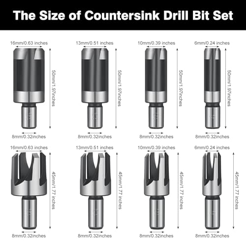 - 【Wide Compatibility】 With a 1/4-inch hex shank, these countersink bits are compatible with most rotary tools, drills, and chucks, including impact drills, handheld drills, drill presses, and benchtop drills. The adjustable depth setting is perfect for drilling into wood, MDF, plywood, plastic, PVC, and rubber. A must-have for any woodworking toolbox.