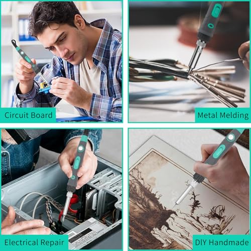 - 🧰【15s Fast Heating-Up】Upgraded 80W high power & ceramic heating core can make our solder iron heats up quickly to the required working temperature in 15 seconds. The soldering iron features a heat-resistant handle, providing a comfortable grip while protecting your hands from excessive heat. The power cord is designed to be durable and tangle-free, reducing the risk of tripping hazards. Moreover, the built-in overheat protection system automatically shuts off the iron if it reaches a dangerous temperature, giving you peace of mind and safeguarding your work area.