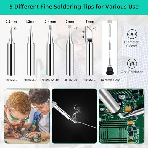 - 🧰【Comprehensive Toolkit for Every Task】This isn't just a soldering iron; it's a complete toolkit. Alongside the soldering iron, you'll find an array of essential accessories. Multiple interchangeable soldering tips are included, each designed for specific applications. From fine-point tips for intricate work to chisel tips for larger soldering jobs, you'll always have the right tool at hand. Additionally, a soldering stand keeps your iron safely in place when not in use, preventing accidental burns and damage. There's also a convenient sponge for cleaning the tips, ensuring optimal heat transfer and longevity of the tool.