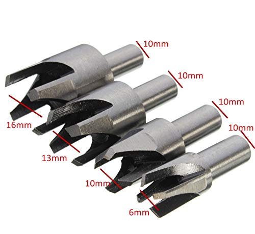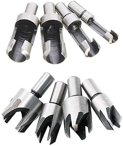 - 8PCS WOOD PLUG CUTTER TOOL DRILL BITS includes 4 standard plug cutters and 4 four-tooth chamfered cutters,can be used with bench drill, hand drill or other professional bench drilling machine. To avoid slipping or eccentricity during drilling, we recommend to use bench drill, or fix the drill.