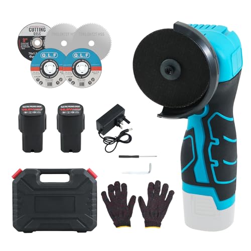 • 【Delivery Content】The grinder tool package includes a mini cordless angle grinder, 3pcs metal cutting discs, 2pc Woodworking cutting disc, charger, 2pcs 2000mAh battery, screwdriver, wrench and glove. If there are any operation problems in the process of using it, please contact us at the first time, and we will give you a satisfactory answer within 24 hours!