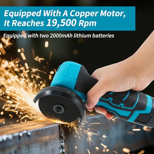 • 【Powerful and Durable Cordless Angle Grinder】Our 16.8V rechargeable angle grinder has a strong power of 500W and uses a copper motor with a speed of up to 19500 RPM to make it more powerful, suitable for various grinding, cutting, and polishing, making your work more efficient. Porous heat dissipation allows the motor to operate at a lower temperature, with higher efficiency and longer service life.