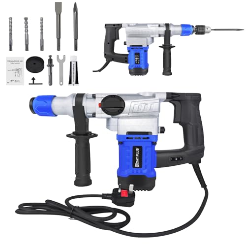 - ⚒ 3 POWERFUL FUNCTION MODES: Easily switch between the 3 modes (drill, hammer and chisel) with just one function key. ①Electric hammer drill can be used for various drilling tasks. ② Professional rotary hammer mode can crack stones, masonry and concrete. ③Switch to chisel mode to remove titles, concrete and bricks.