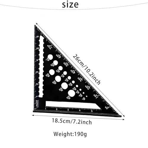 - 【Durable Aluminum Alloy Construction】Crafted from high-quality aluminum alloy, this 7-inch speed square offers exceptional durability and lightweight handling, ideal for demanding carpentry and building tasks. The solid build of the set square ensures long-lasting performance on job sites, making the carpenters square a reliable squares tool for professionals seeking a sturdy and corrosion-resistant solution