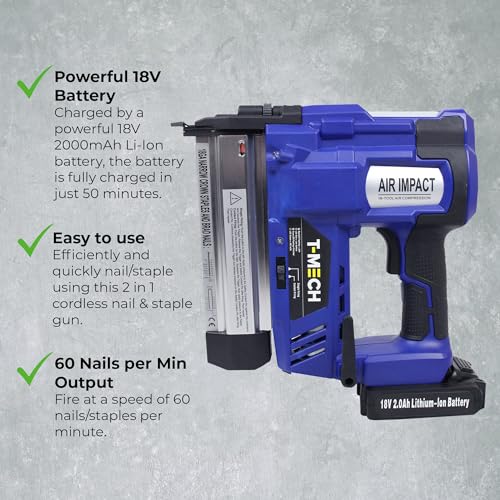 - Powerful, heavy duty 18V Cordless 2 in 1 Nail and Staple Gun