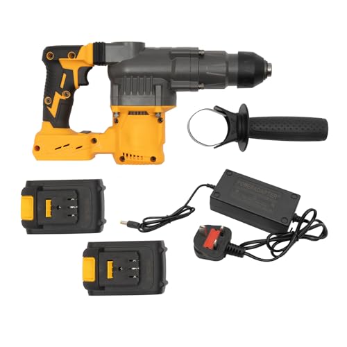 2 In1 Chisel Mode Professional Power Tools Wireless Demolition Hammer Tile Removal Drill Brushless Copper Motor Vibration Reduction Handle Concrete Drilling Cordless Rotary for Wood Metal Yellow