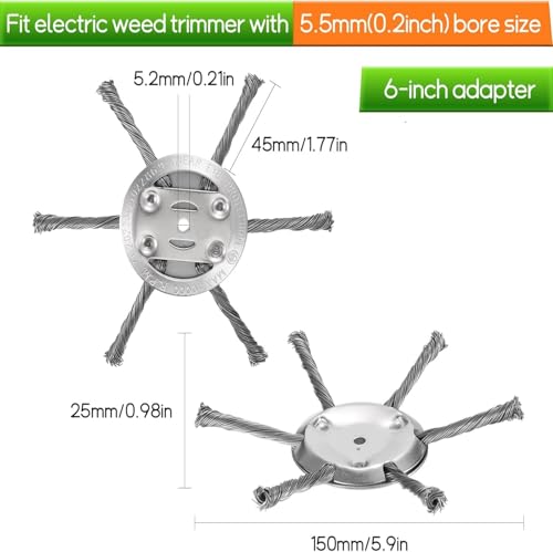 - 【Effortless Installation】 It fits electric weed trimmer with 5mm(0.2inch) bore size. Just place the brush head on the top bolt of your straight-shaft trimmer, secure it with nuts and other included accessories, and you're ready to go. The fast assembly and disassembly process save time and effort