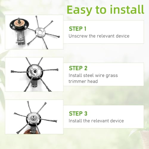 - 【Versatile Outdoor Applications】Ideal for a variety of outdoor tasks, this Steel Wire Grass Trimmer Head efficiently removes weeds from hard-to-reach corners, between bricks, sidewalks, and even sand and gravel.It also works well for clearing moss and rust, suitable for use in gardens, courtyards, and parking lots