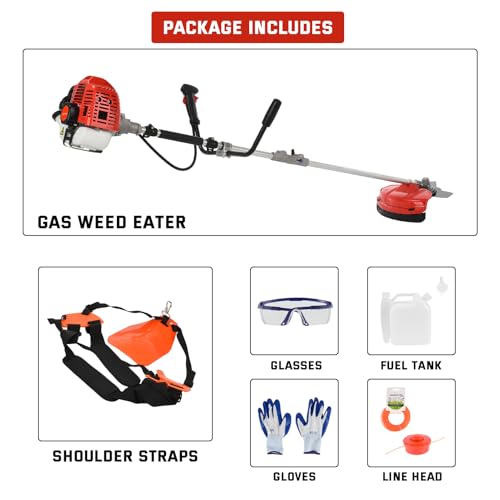 - 2-in-1 Versatility for Garden Maintenance: Switch between the heavy-duty 10" brush cutter blade and 0.09" trimmer line head with ease. Perfect for maintaining your lawn’s edges or cutting through thick bushes and branches, this multi-functional tool covers all your garden needs.