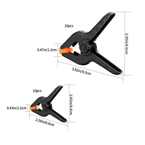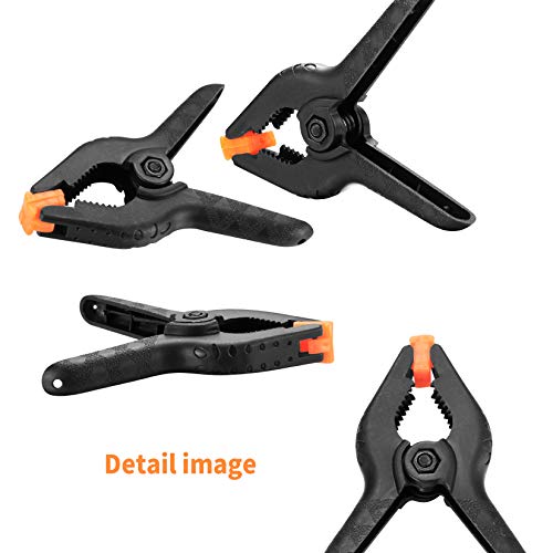 - 【High-quality Material】These spring clips clamps are made of reinforced nylon, which made the construction more stable. The clamps adapt to the workpiece due to the movable clamping jaws of these heavy duty spring clips. Soft durable pads of the nylon grip clamps can be adjusted to protect fine surfaces.
