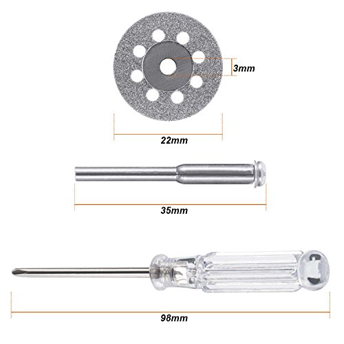 20 Pieces 22 mm Diamond Cutting Wheel with 4 Pieces 3 mm Mandrel and 2 Pieces Cross Crystal Screwdriver for Dremel Rotary Tools