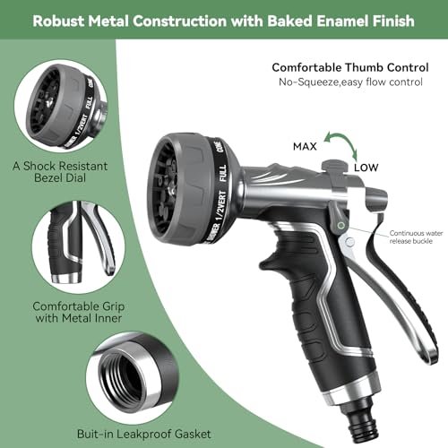 - 🍄【Heavy-Duty Metal Construction for Unmatched Durability:】 Built with premium-grade metal, this hose pipe spray gun is designed to withstand rigorous use and harsh weather conditions, outlasting ordinary plastic hose gun for years to come.