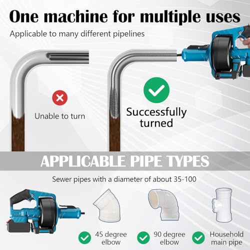 - Wide Application: Clears 35mm-100mm blockages in kitchens, bathrooms, bathtubs, sinks, showers, and downpipes, making this drain auger spiral machine ideal for diverse household needs.
