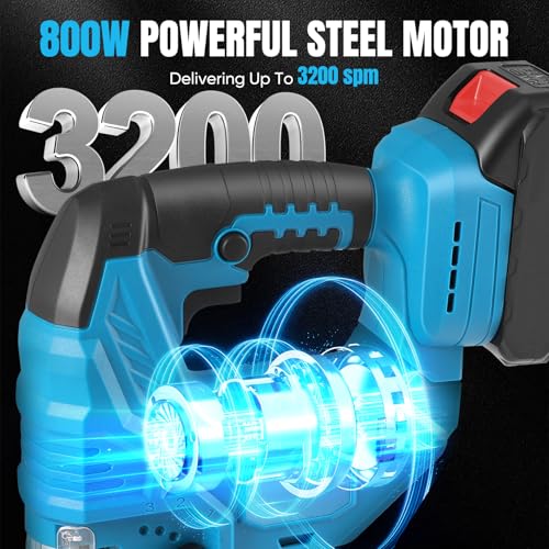 - 800W POWERFUL BRUSHLESS MOTOR: Equipped with a high-performance 800W pure copper motor, our cordless jig saw offers unrivaled cutting speeds of up to 3200 SPM. Its adjustable 6-speed control allows for precise cutting of a variety of materials, making it a must-have tool for both professional and DIY projects.