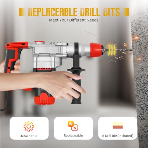 - ✅【Four Different Functions】Drill, electric hammer, electric pick, powerful hammer. You can choose a suitable electric hammer head according to your wall.
