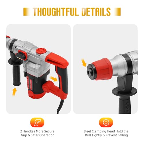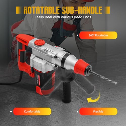 - ✅【360 Degrees Rotatable Handle】The demolition hammer has a compact design, easy operation, and a front handle that rotates 360° to adapt to the hand position required in various jobs.