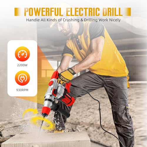 - ✅【Powerful Electric Hammer】Frequency: 50Hz, Speed: 0-930RPM. High-precision copper core motor, strong power, high temperature resistance and long service life. With all the power of 2200 watts on the tool, the electronic speed control ensures work is appropriate to the material and application.