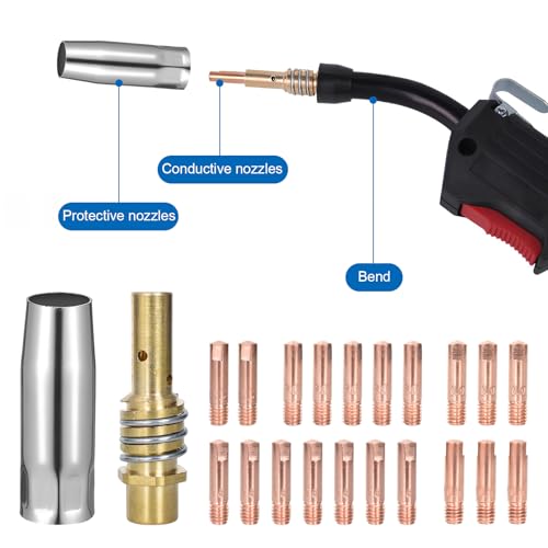 24 Pack MB15 15AK Welding Gun Accessory Kit, Contact Tips for Welding, Handheld Welding Tip, Gas Nozzle/Contact Tip Holder Fit MIG Co2 Welding Torch,Chicago Welder, Titanium, Copper
