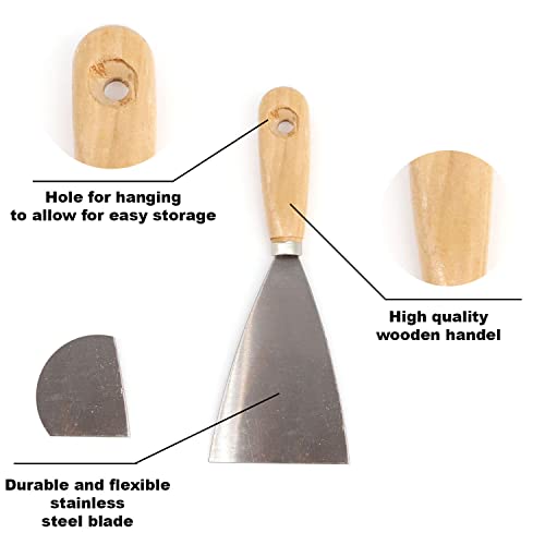- 🏠🚪🌓✨ EASY GRIP WOODEN HANDLE – Wallpaper and paint scraper set. Can also be used as a putty knife or for filling holes & cracks on surfaces in preparation for painting. Each scraper has a generous flex to it allowing for a great user experience