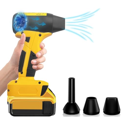- 【Compatible with Dewalt 20V Battery】The cordless air duster works for dewalt 20V lithium battery, like DCB200 DCB201 DCB202 DCB203 DCB204 DCB206 etc. The battery NOT included. Beware: The jet fan blower will stop working if the voltage below 15V.