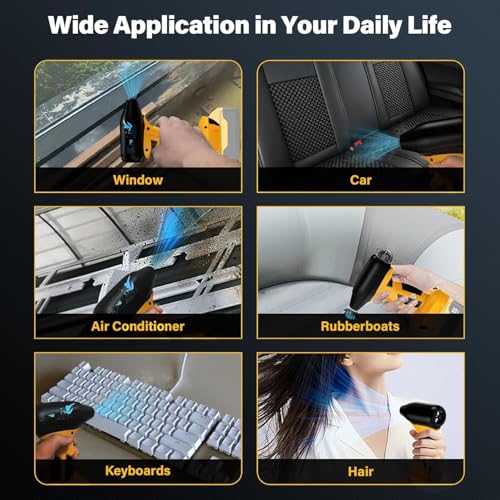 - 【Wide Application】The air blower is perfect for computer keyboard, laptop, camera, car seat and blinds' cleaning etc.Can even be used in products that need to be inflated, such as inflatable beds, lifeboats, etc,And Be Used For Picnics And Making Fires, Cleaning The Ground, And Pet's Hair Drying. — If you have any questions of our jet fan blower, please feel free to contact us, we will help you within 24hrs.