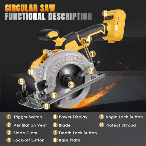 - 【Compatibility】The cordless circular saw is compatible with Dewalt 18v and 21v lithium-ion batteries such as DCB200, DCB203, DCB204, DCB206, DCB201, DCB230, and DCB240. It efficiently handles wood cutting jobs with ease. (Tools only, batteries not included)