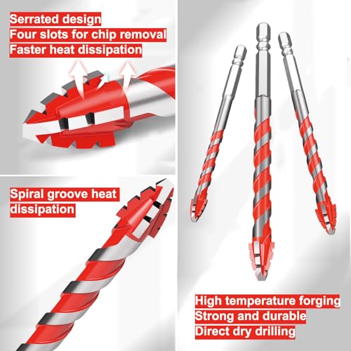 ![<ul><li>Serrated Eccentric Design: This drill is an eccentric drill, adding a serrated design on the basis of the four-edged drill, which is sharper and more efficient in drilling.</li><li>Premium tungsten carbide: Manufactured from high-grade YG6A tungsten carbide alloy [WC + 6% Co + <1% (TaC + NbC)], where the rare carbides TaC and NbC enhance the bonding strength between tungsten carbide (WC) and cobalt (Co). This formulation delivers both toughness and hardness, resulting in extended service life.</li><li>Wide application: it can be dry punched. It is suitable for tiles, glass, quartz, ceramics, bricks, granite, marble, plastic, wood. It is a good helper for home decoration and industrial applications.</li><li>Applicable models: cordless drills, hand drills, screwdrivers, bench drills, machine tools. (For dual function drills, switch off the impact mode and switch to the normal drill function)</li><li>Package Details: it contains 5 bits 6mm,6mm,8mm,10mm,12mm.1/4 hexagonal shank with double slot.</li></ul> blank](https://www.uktoolstore.co.uk/wp-content/themes/mediacenter/assets/images/blank.gif)