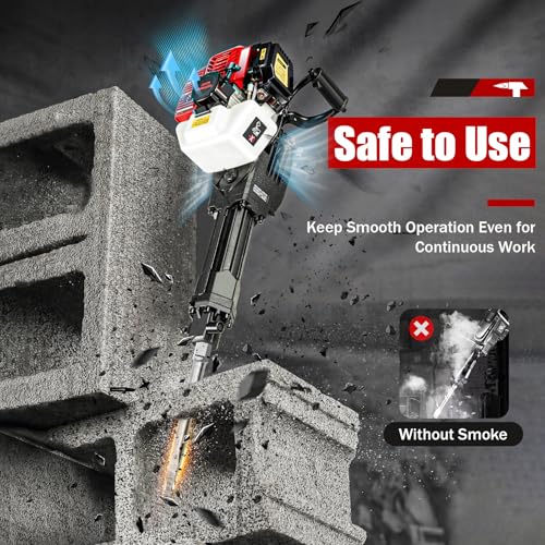 52CC 2 Stroke Petrol Demolition Hammer, Heavy Duty Post Driver Concrete Breaker Punch Drill, Gas Powered Jack Hammer with Point and Flat Chisel, Excavator Machine Hammer Concrete Breaker Kit