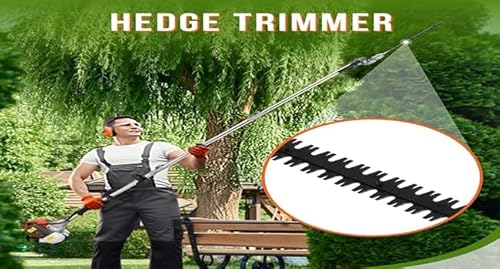 - Trim Hard-to-Reach Hedges Effortlessly: Our long reach hedge trimmer attachment enables you to tackle tall hedges and bushes with ease, reaching heights for up 12ft with extension poles. Each extension pole measures 75cm in length, giving you unmatched precision and control.