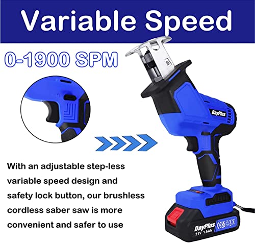 - ⭐【Battery & Fast Charger】21V power reciprocating saws with 1 battery provide more capacity and longer runtime than other batteries. With a 1.5-hour fast charger, the total working time can last for 30-60 mins, working efficiently up by 10%. The batteries indicator will show the remaining power in real-time, without affecting your work due to no electricity.