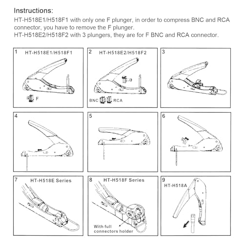 - 3 in 1 Compression/Crimping Tool: Work with RG-6, RG-59, RG-58, BNC, RCA etc. Help to Accurate in Pressing and Not Easy to Damage F Head. It Guarantees the Quality of Pressing and Displays the Exquisite Pressing Appearance At the Same Time