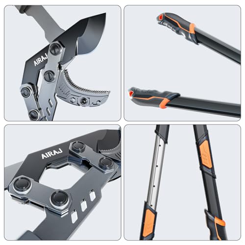 - 【Efficient and Rustproof Blade】The blade of AIRAJ Extendable Loppers is made of 55C high carbon steel, and the shark mouth design makes it bite tightly and not easy to slip when pruning. The blade comes with black Teflon coating, which makes the blade durable, not easy to rust, easier to clean and more beautiful.