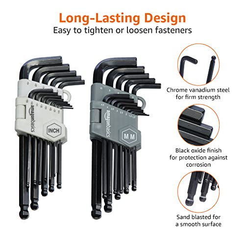 Amazon Basics Hex Key/Allen Wrench Set with Ball End – 26 Piece