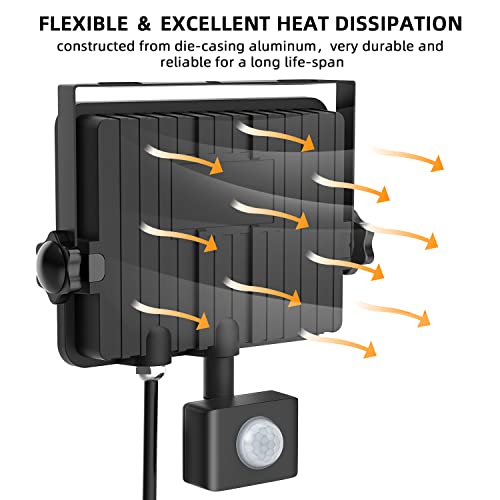 - 【IP66 Waterproof】This Outdoor Motion Sensor Security Light is built with solid aluminium alloy, IP66 weatherproof rating, heat resistant, frost resistant, and capable to resist all extreme weather conditions.