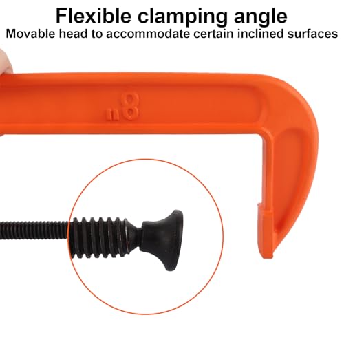 - 【Multipurpose 】Cast malleable iron frame with I-beam design keeps your G-Clamp from bending and warping allowing it to squeeze with more force; heavy duty g clamp secures parts for assembly, fastening, gluing, and welding in woodworking, building, automotive applications and metalworking