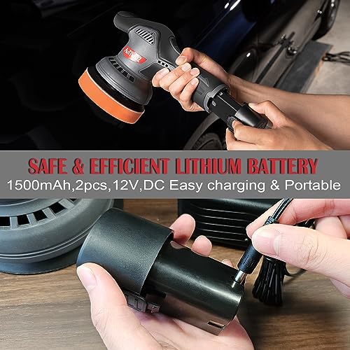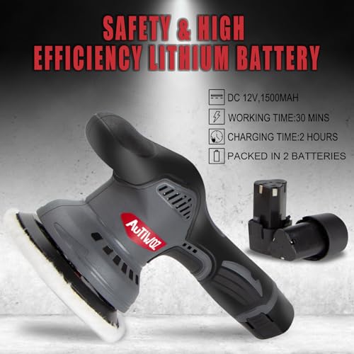 - ➤【Humanized Design】The polisher's handle is with suitable diameter and length, and made of comfortable rubber material, wrapped with anti-slip texture outside. The backing plate of this polisher machine can work in size of 5". Come with 2PACK 1500mAh large-capacity battery and a charger, can bring you long service life and cost-saving. You can charge one battery while running out the other, so you don't have to sweat being out of juice.
