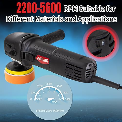 - 【Light Weight & Variable Speed Control】 Only 3.728 pounds light weight, compact and portable design make it easy for carrying and storage. 6-level variable speed dial allows users to control speed from 2200 to 5600RPM according to various tasks or materials and improve work efficiency.