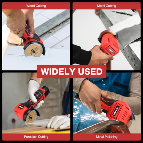 - 【Portable Cordless Angle Grinder】- This angle grinder cordless eliminates the problem of tangled cables and provides great convenience for you to carry. Mini angle grinder measures 10 x 20cm/3.94 x 7.87inch, which is also equipped with a storage box with handle, lightweight and portable, suitable for indoor and outdoor use.