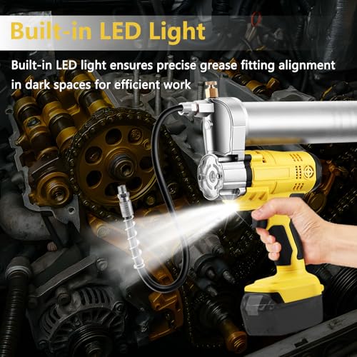 - 【Comfort-Focused Design with LED Light】The ergonomic handle offers a secure and comfortable grip, ideal for long tasks. A built-in LED light illuminates dark work areas, helping you locate grease fittings precisely and work efficiently anytime, anywhere.