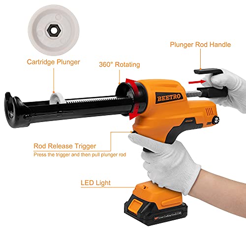BEETRO Cordless Caulking Gun No Drip, 20V Electric Caulk and Adhesive Gun Kit 10oz/300ml with Rapid Charger and 2.5Ah Li-Battery, Cartridge Gun with Rotatable Carriage