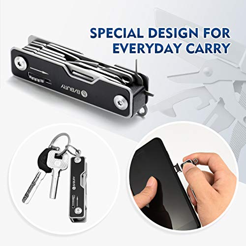 BIBURY EDC Multitool, 10 in 1 Pocket Size EDC Key Ring Multi Tool, Swiss Army Type Multitools with Rope Cutter, Screwdriver, SIM Card Pin, Safety Lock Design – Black