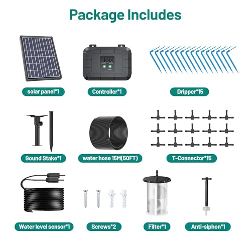 • Eco-Friendly & Cost-Effective: Powered by solar energy, this system reduces electricity costs and environmental impact. The efficient design ensures consistent watering even on cloudy days, saving water and keeping your garden lush
