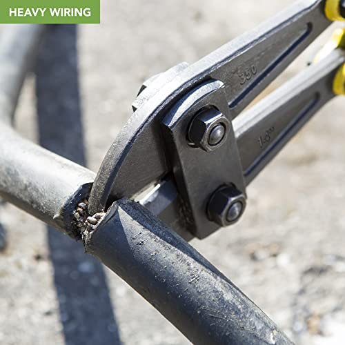 - HEAVY DUTY BOLT CUTTERS – Invest in a pair of large 14-inch bolt cutters that will last for years to come! These cable cutters quickly and easily remove bolts from industrial furniture and cabinets.