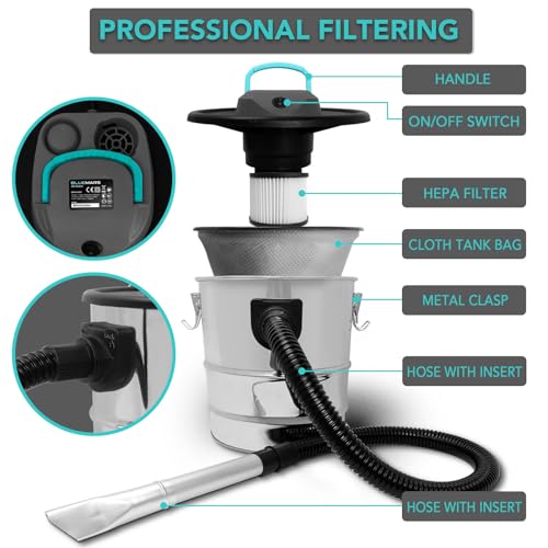 - 【20L Capacity】 The BlueMars Ash Vacuum Cleaner is equipped with a robust 1000W motor and a spacious 20L capacity, delivering impressive suction power exceeding 16KPA. This makes it highly effective for handling everyday ash and dust cleaning tasks, whether it’s from fire pits, BBQs, or stoves, ensuring your space remains clean and tidy with minimal effort.