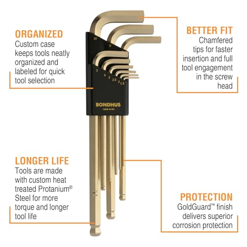 - Bondhus 38099 GoldGuard Ballpoint L-Wrench, Gold, WS: 1.5, 2, 2.5, 3, 4, 5, 6, 8 und 10mm