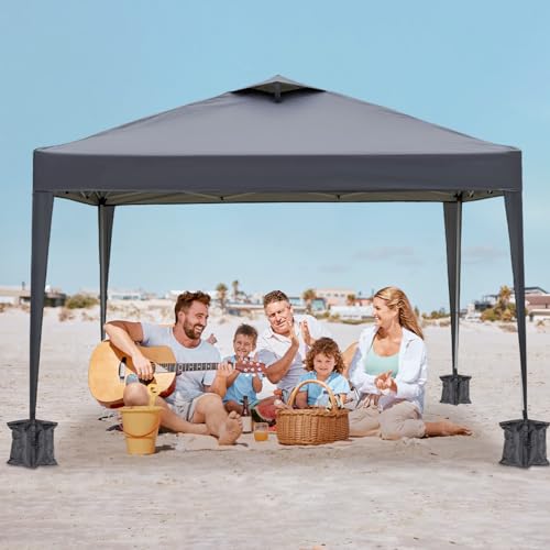 - Pop Up Gazebo: Easy to use pull-pin sliders and push button leg extenders. Only one person needed for assembly