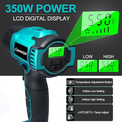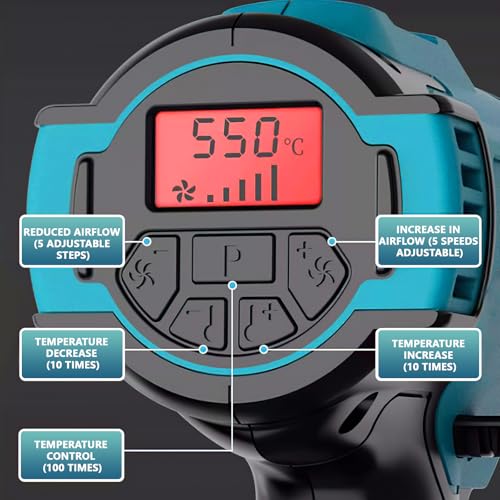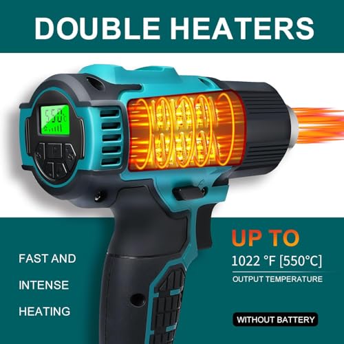 - 🏆【Battery Compatibility】Designed to be compatible with 18V-21V batteries (such as BL1815, BL1820, BL1835, BL1830B, BL1840B, BL1850B, BL1860B, LXT400), this cordless heat gun provides the freedom of use without the hassle of cords, allowing you to tackle projects anywhere conveniently. (Note: Battery not included.)